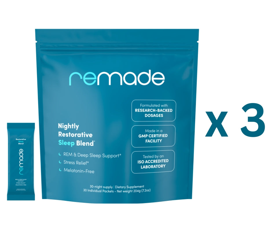 Remade is manufactured in a GMP-certified facility that scored 100% during its latest inspection. We conduct three rounds of product testing in an ISO-accredited laboratory. Remade is all-natural, drug-free, non-habit forming, and safe to take as part of your long-term sleep wellness routine.*