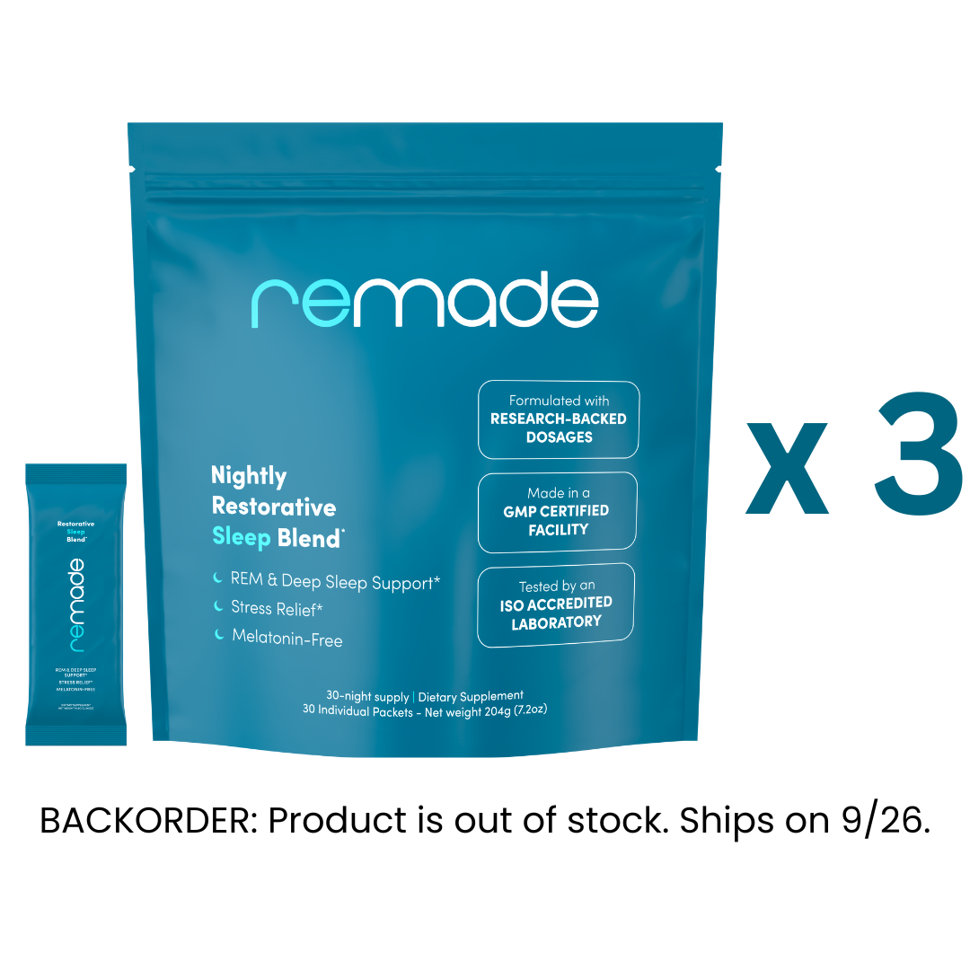 Absolutely! Remade only uses natural, high-quality ingredients backed by science. It doesn’t contain any melatonin or drugs, so there is no risk of dependency or disrupting the body’s natural processes. Remade is designed to be taken nightly as part of your long-term sleep wellness routine.*
